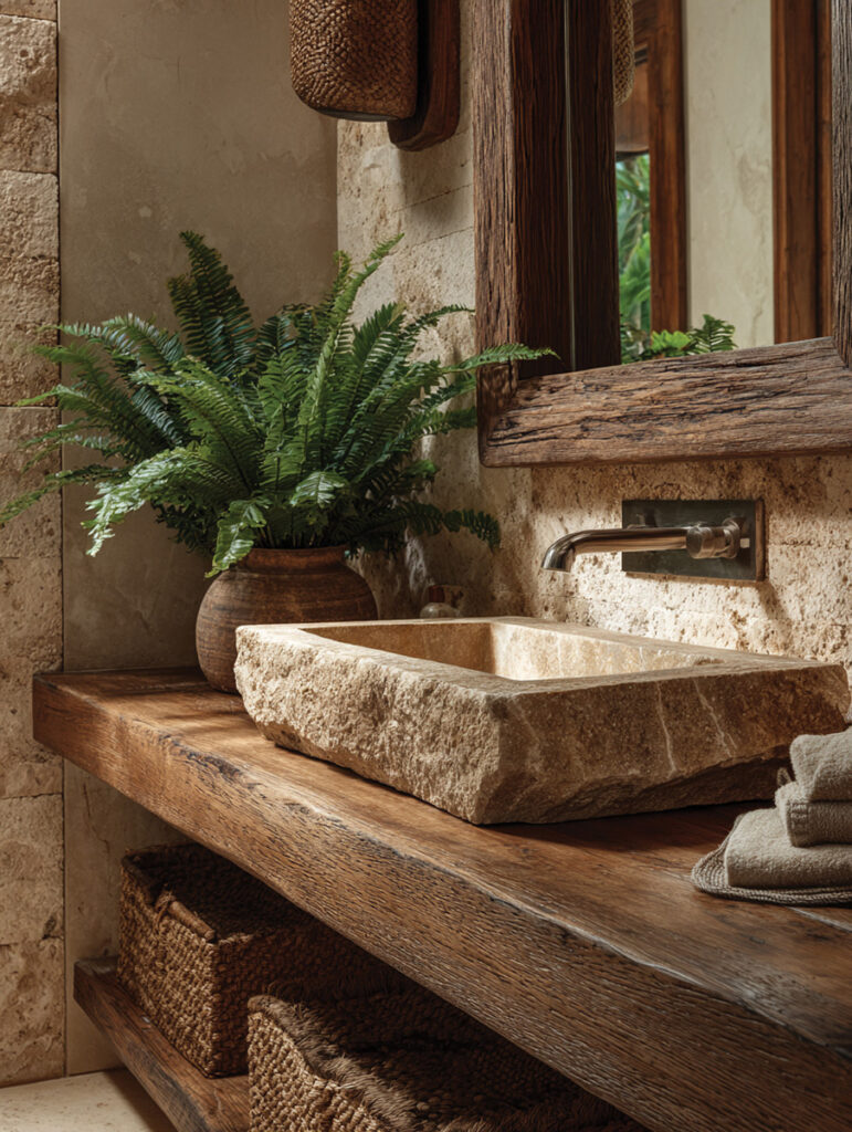 Expect polished concrete floors, teak details, volcanic stone, bamboo ceilings, and muted tropical tones. Designers call it barefoot luxury—materials you can touch, textures that age well, and palettes inspired by sand, jungle, and river stones.